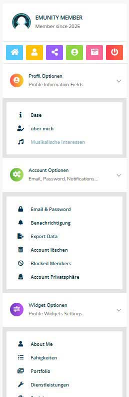 Die Menupunkte unterscheiden sich jeh nachdem, welche Mitgliedschaft oder Pakete du dazugekauft hast.